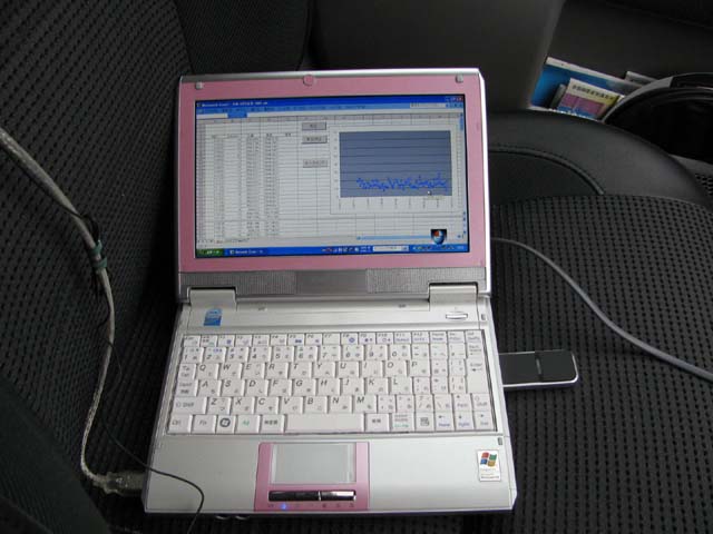 さて、いつもの通り車載記録を行おうと、持って行った道具を見たらUSBハブとカードリーダを間違えてしまい、「位置情報が記録できない!」。とりあえず、仕方がないので、GPS付きのMP3プレーヤーをいつも持ち歩いているので、今回はこちらで位置情報を記録し、時間合わせでデータを取ることにした。
